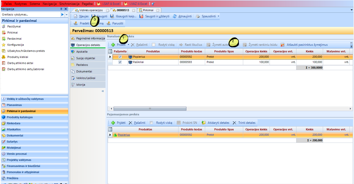 Suvestą informaciją išsaugokite ir pasirinkite skiltį „Operacijos detalės“. Šioje skiltyje sudėsime visas prekes, kurias vešime tretiesiems asmenims.