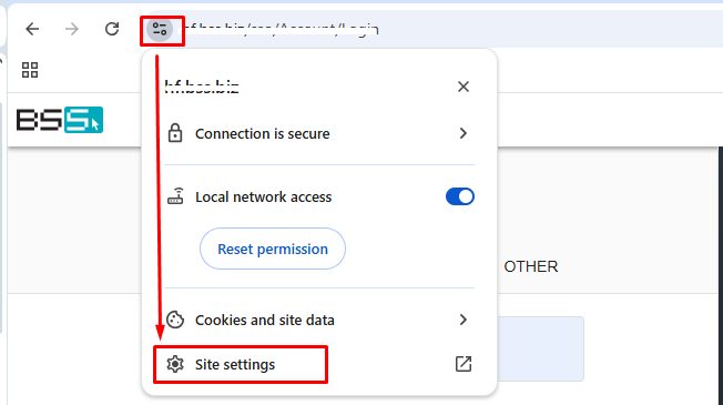 1.2. Raskite Local Network Access nustatymą. Svetainių nustatymuose slinkite žemyn ir suraskite nustatymą Local Network Access.