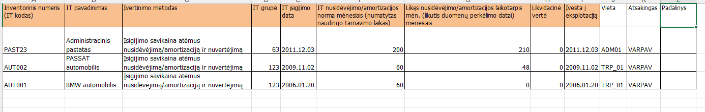 • Likusi nusidėvėjimo trukmė – nurodoma likusi naudingo tarnavimo trukmė mėnesiais.